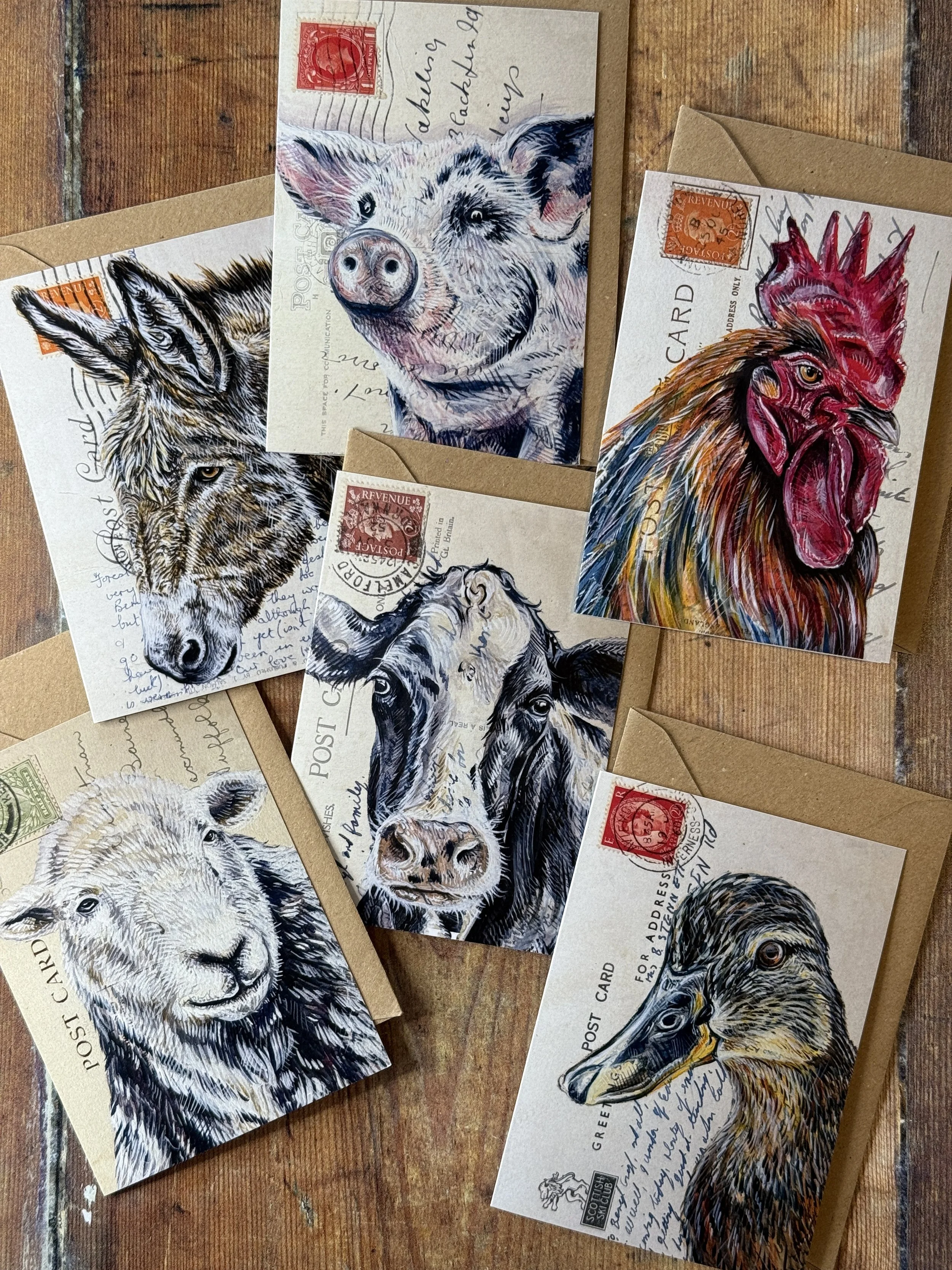 Dimensions are 10.5cm x 14.8cm (A6). Some are portrait format and some landscape format (see individual images).